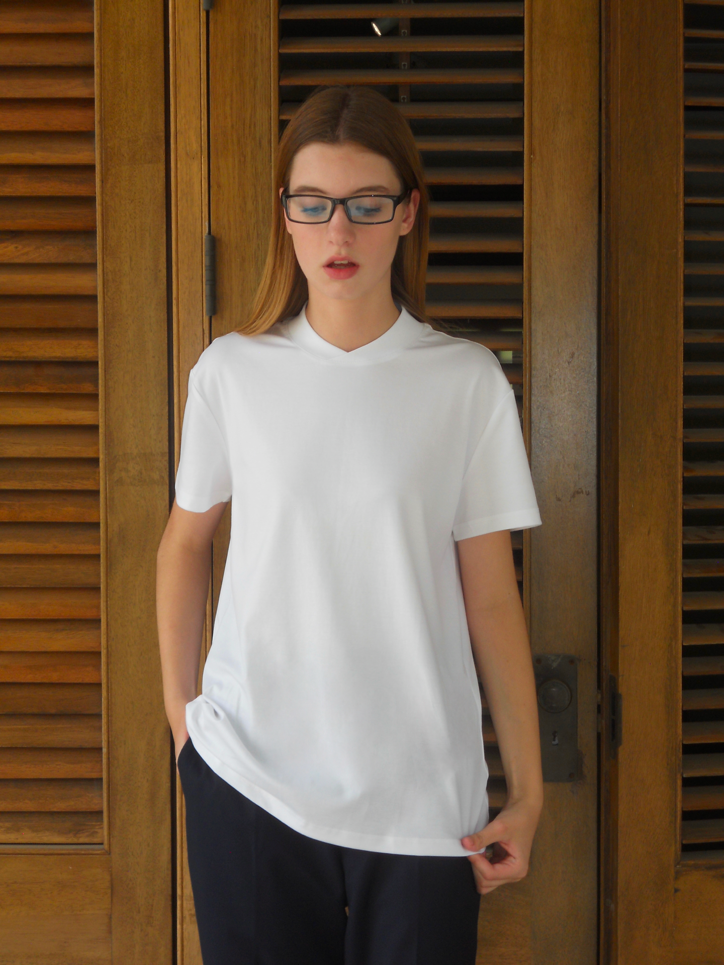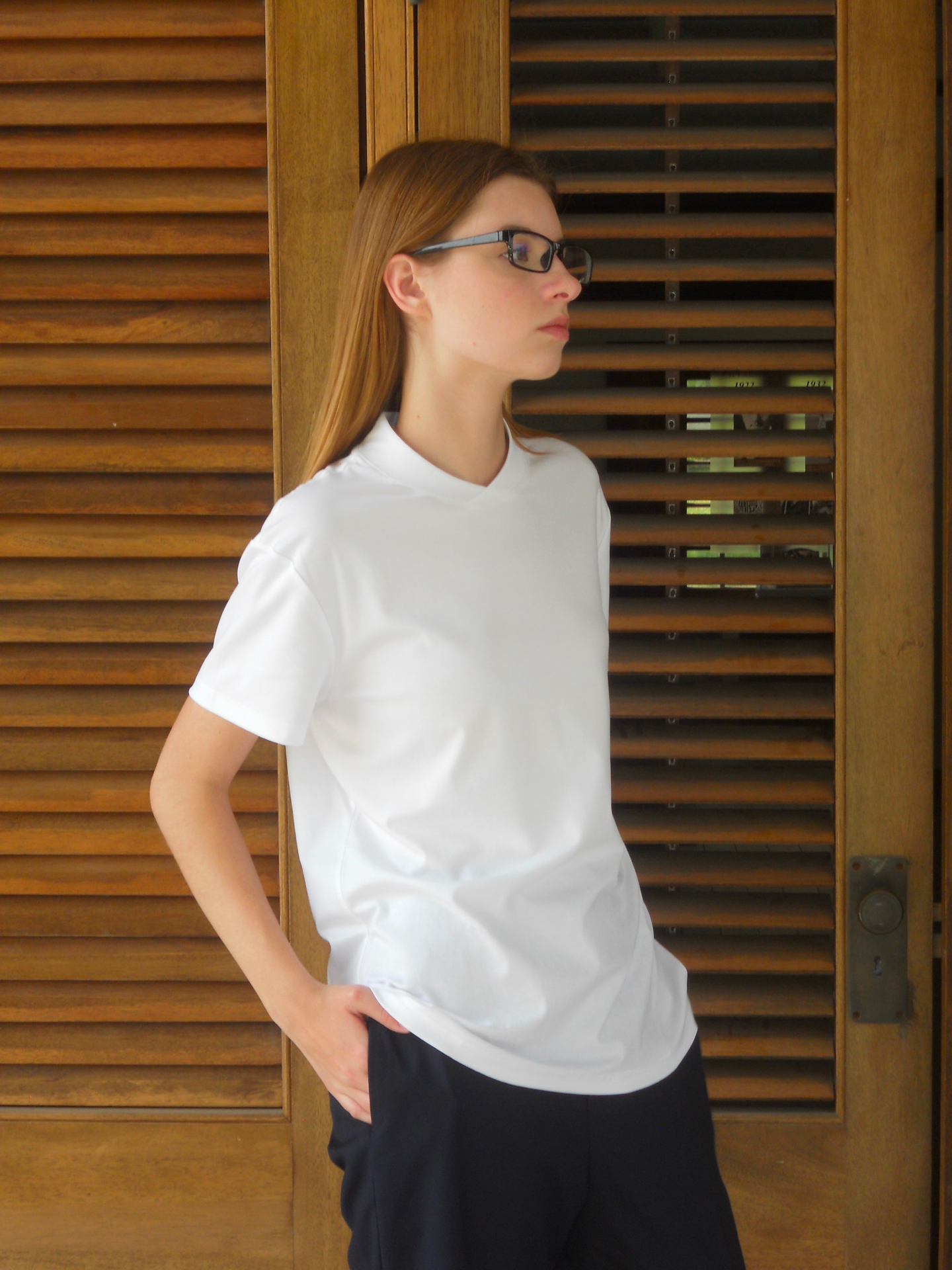 Silk-finished fabric casual T-shirt